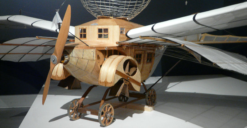 Liettuan ilmailumuseo – tämä erikoinen luomus ei ole sentään oikea lentokone, vaan Jules Vernen teosten hengessä suunniteltu steampunk-henkinen mielikuvituskone.